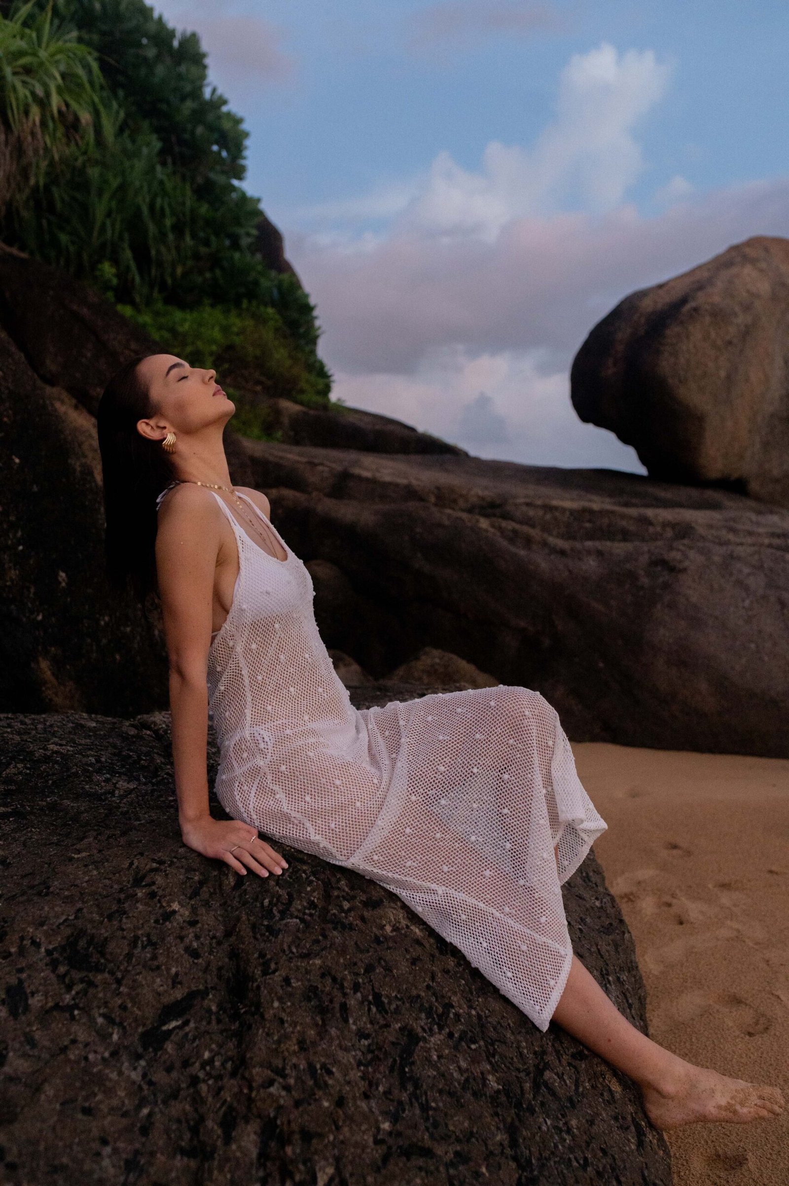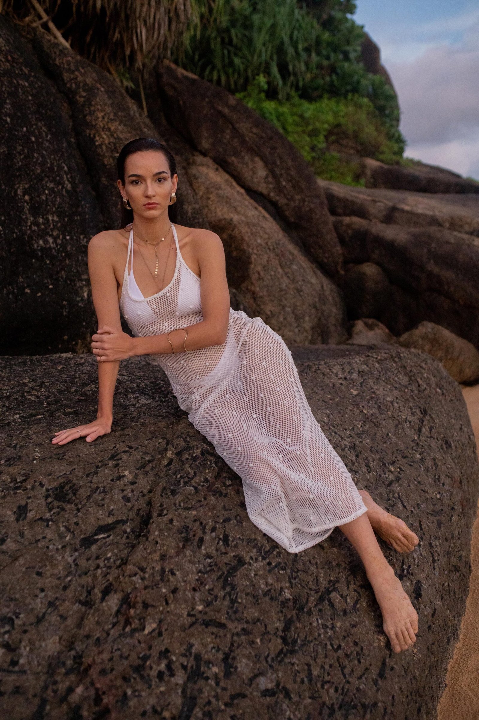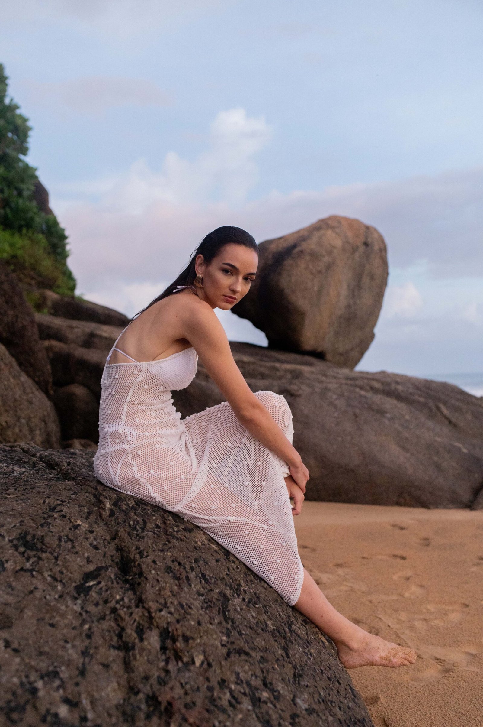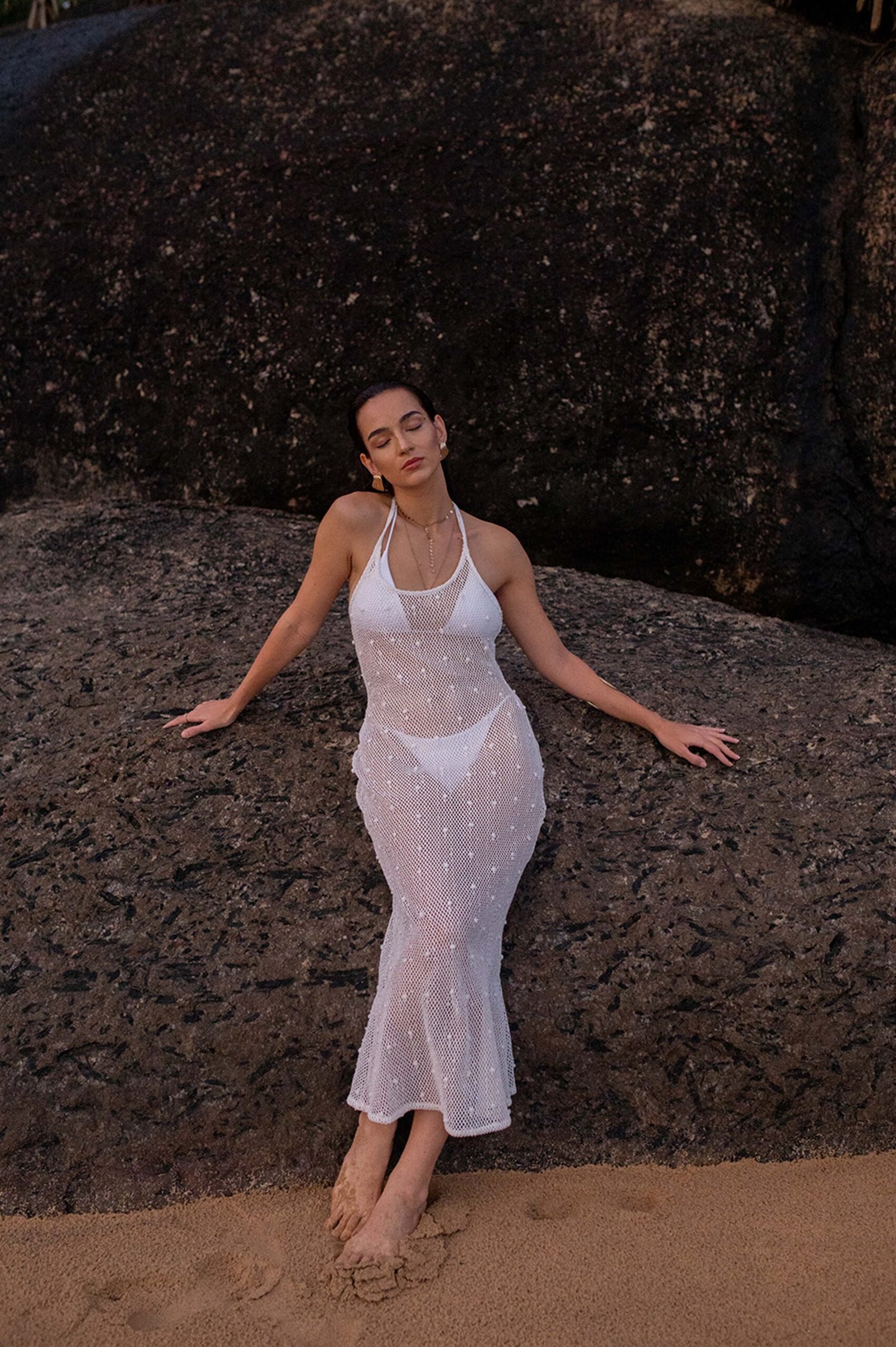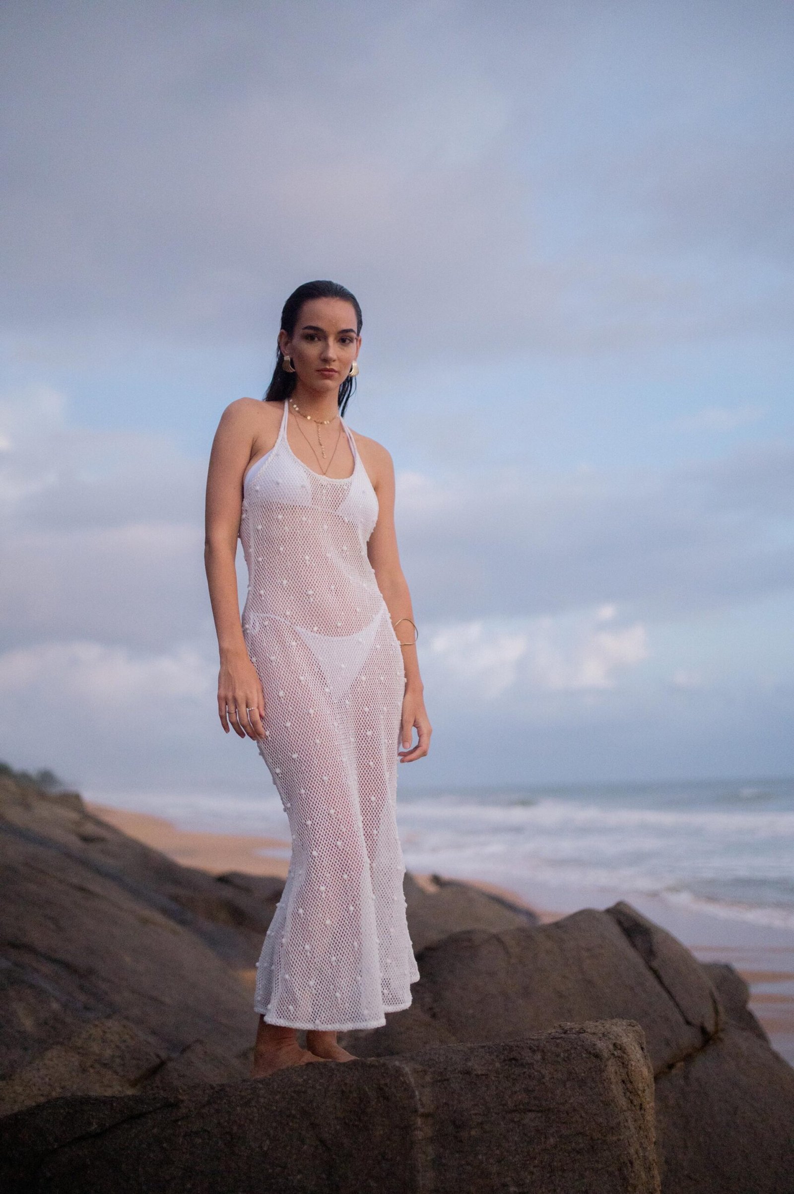 Designed not just as a cover-up but as a versatile addition to your beachwear collection, this piece goes beyond the ordinary. Whether used over a swimsuit on sunny days or layered creatively for an evening near the shore, this sheer midi dress adapts effortlessly to your styling needs. While the sheer construction invites creativity in layering, its sophisticated design ensures you remain the center of attention wherever you go.